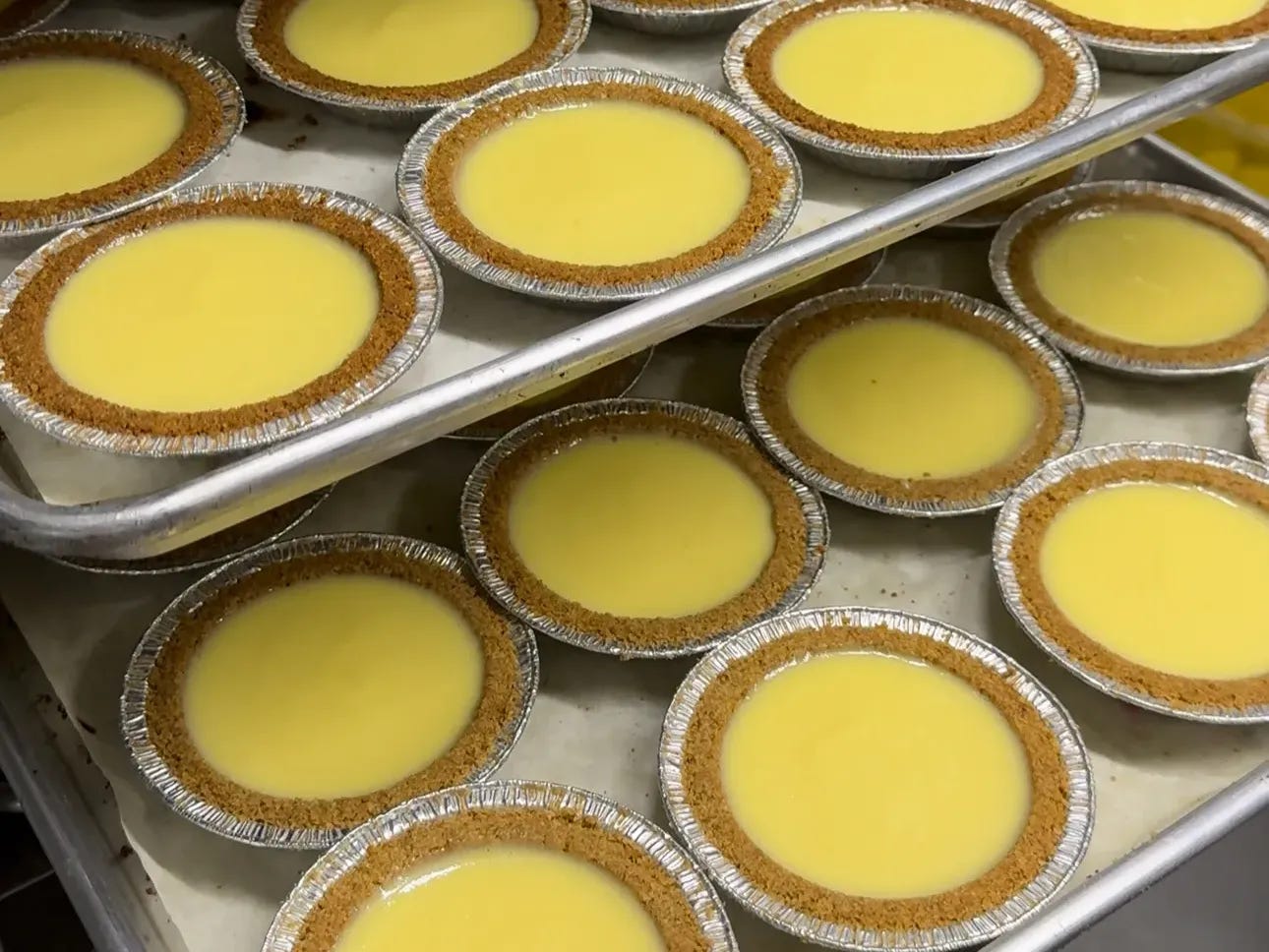 What makes Steve’s pies so special that they could induce marriage? According to Victoria, it comes down to authenticity, which requires great quality ingredients. She shows me their processing facilities where the buttery graham cracker crust is baked fresh, dried, crumbled, and densely packed into tins of various sizes. Nearby, the golden ratio of condensed milk, egg yolks, sugar, and lime juice is mixed into their beautifully balanced custard filling.
