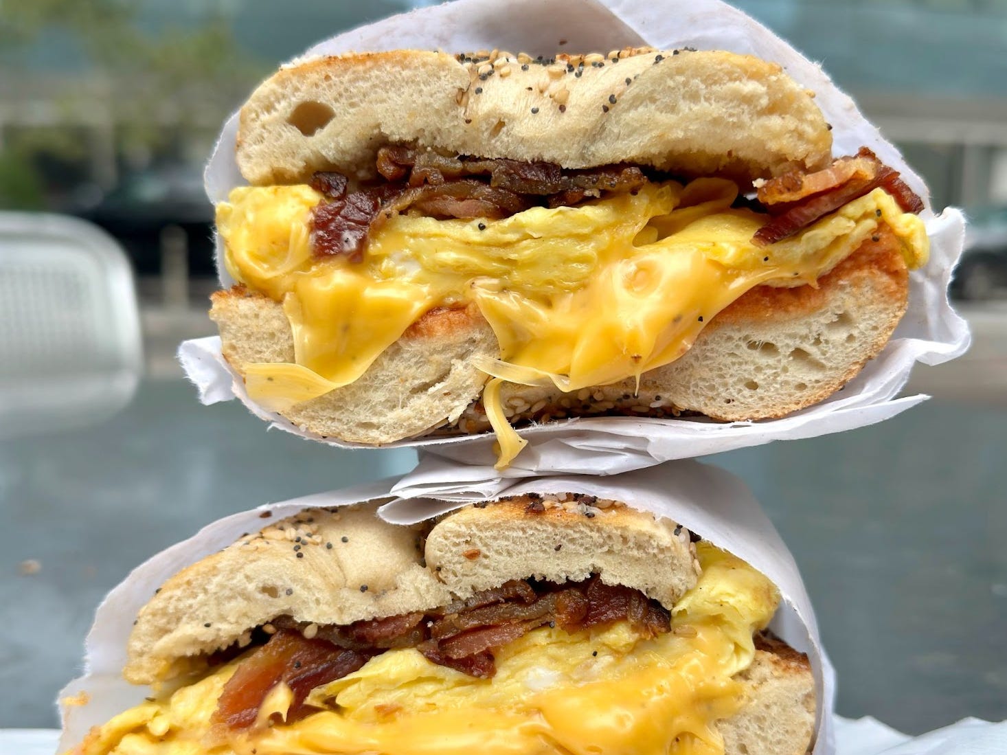 Quentin hand-rolls, proofs overnight, and kettle-boils his bagels each day. One bite and you taste the fruits of his labor: a crisp exterior and soft, fluffy interior. When paired with his homemade cream cheeses, they emerge as an ideal start to your day. Order a BECSPK, and you’ll find even more beauty in it all: fluffy eggs, crackly bacon, and the perfect balance of condiments that can make your morning commute feel like a dance.