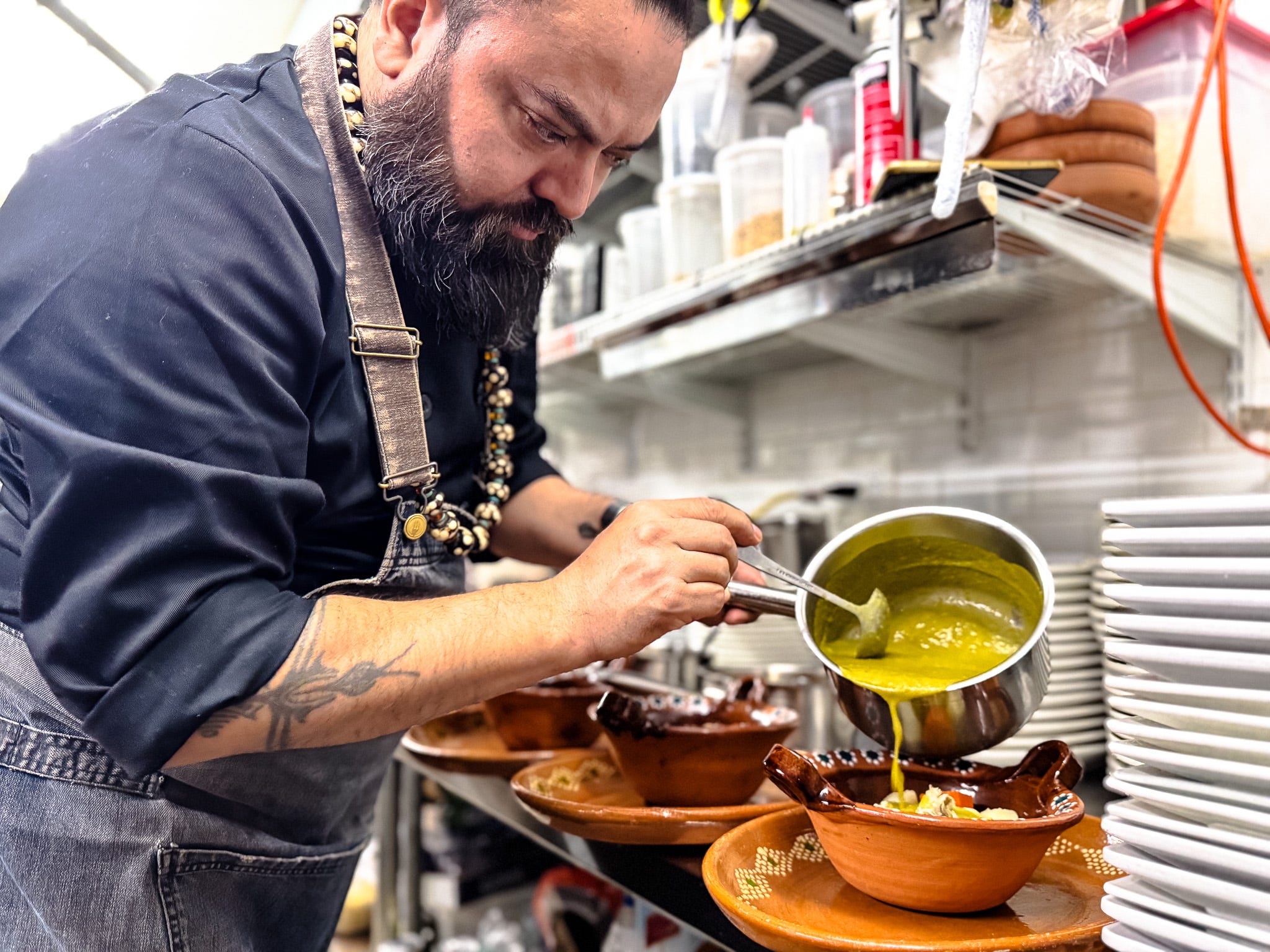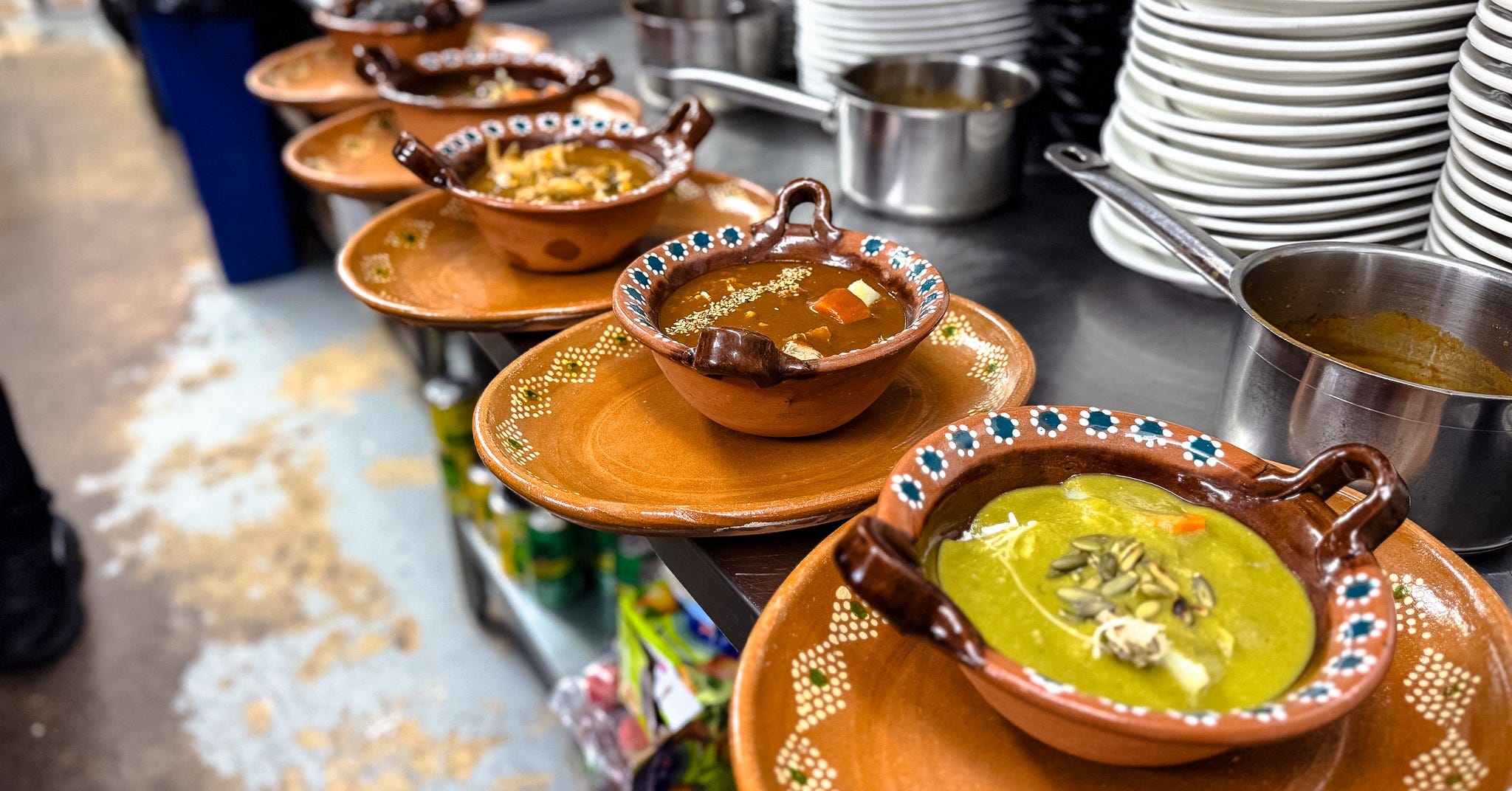 I meet Jorge after the lunch rush, expecting a quiet room, but I find the opposite. Friends are still catching up over big bowls, and the odd solo diner leans in close to their stew. I come here often for the soups and stews, a coffee, or the off-menu Dr. Jaguar, a hot drink of herbs and spices that helps with a cold or the flu. But today I am here for something more foundational than any single dish.